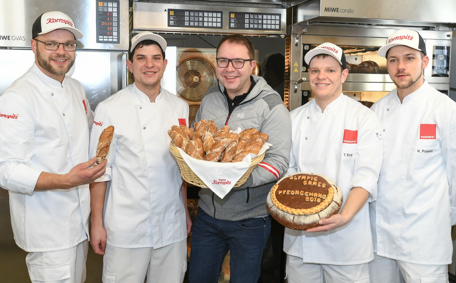 Als offizieller Brotpartner des Österreichischen Olympischen Comités (ÖOC), sorgt das internationale Familienunternehmen zum dritten Mal bei Olympischen Spielen für frisches Brot, Gebäck und Feine Backwaren im Austria House. Vier Bäckermeister von backaldrin backen dort in der eigens eingerichteten Backstube täglich für die Sportler und die zahlreichen Gäste. Insgesamt wurden Anfang Februar rund zehn Tonnen Rohstoffe nach Südkorea geliefert. In Summe entstehen daraus etwa 2,5 Tonnen Gebäck und 2 Tonnen Kuchen. Neben dem Original Kornspitz verlassen auch Kaisersemmeln, Brezen sowie Apfelstrudel, Sachertorte und vieles mehr die Backstube. Pro Tag werden im Austria House in Pyeongchang rund 5.000 Stück Gebäck, bis zu 100 kg Brot und etwa 400 Stück Kuchen verspeist. „Bis zum Ende der Spiele werden über 100.000 Stück Gebäck für das Austria House hergestellt worden sein“, schätzt backaldrin-Bäckermeister Günter Koxeder. Diese Mengen zeigen einmal mehr, dass Sport und Ernährung ein gold-reifes Duo sind. Denn neben den Gästen ist die Verpflegung mit frisch gebackenen Kraftquellen vor allem für die Athleten extrem wichtig. „Das positive Feedback der Sportler macht schon ein bisschen stolz“, lächelt Koxeder.