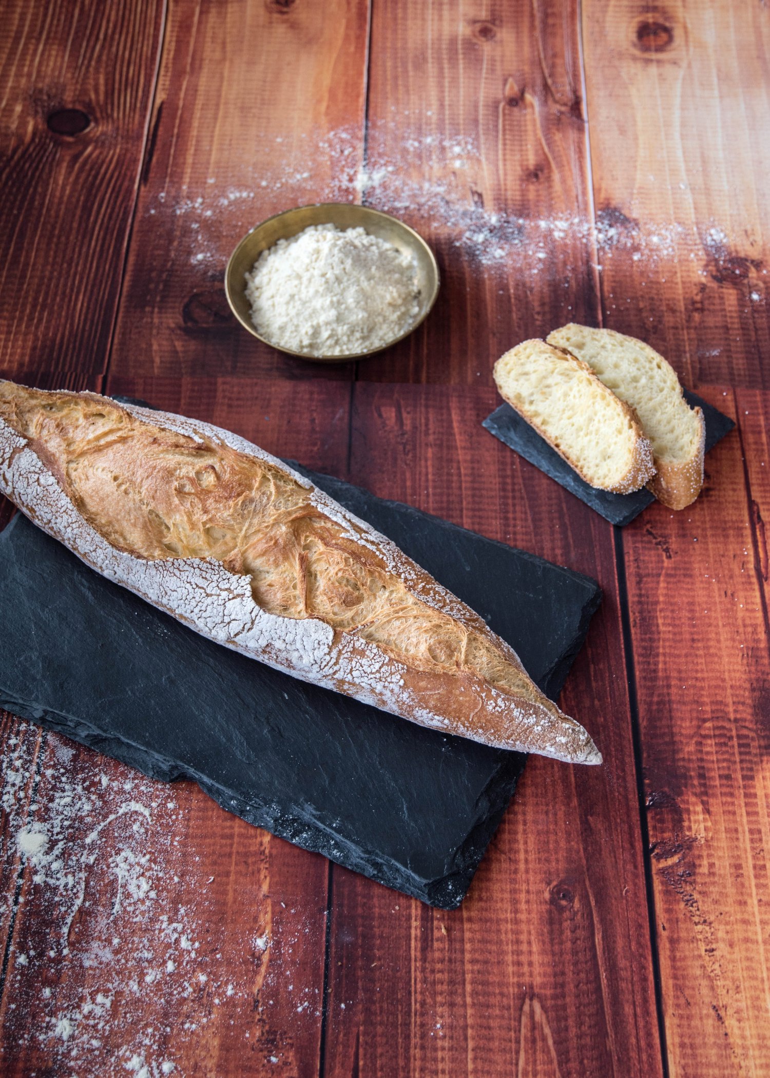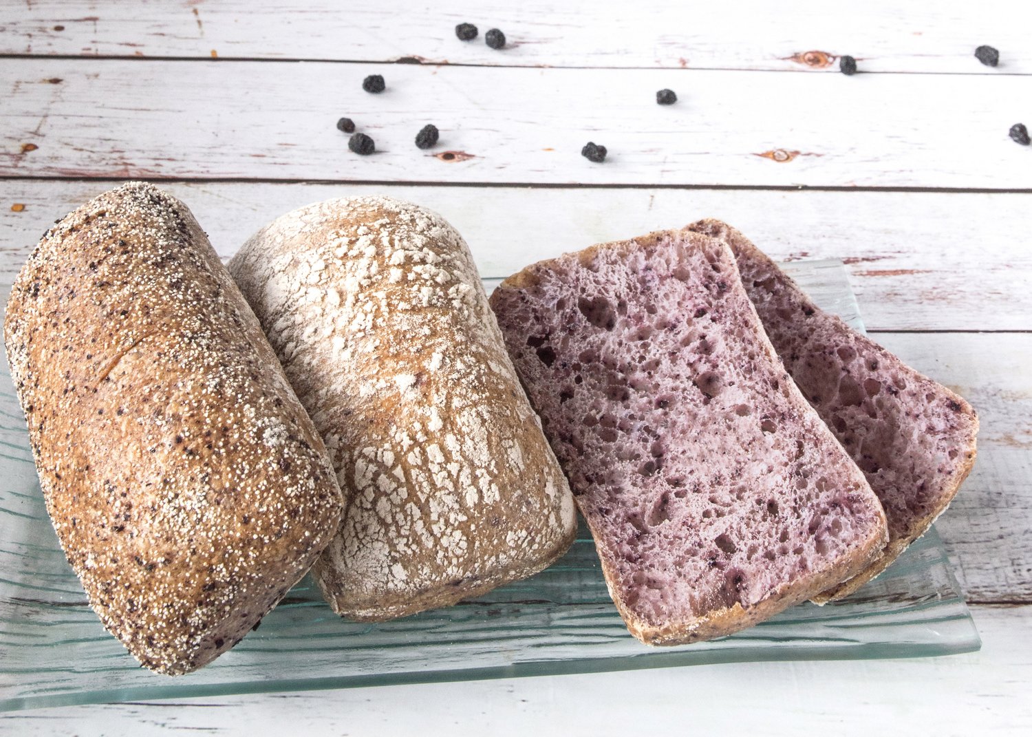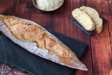 Die feinsplittrige Kruste mit den dezenten Karamellnoten wird durch die lilafarbene, fluffige Krume, die ein herzhaft fruchtiges, dezent süßes Aroma aufweist, hervorragend ergänzt. Hervorzuheben ist die einzigartige Paarung der mild säuerlichen Aromen des Weizensauerteiges, eingebettet in die intensiv fruchtigen Noten der Aroniabeere und des Apfelsaftes. Diese verschmelzen zu einem außergewöhnlichen Geschmacks-erlebnis. Ein Schimmelkäse wie der Roquefort mit seinem nussigen rosinenähnlichen Geschmack harmoniert bestens mit den fruchtig säuerlichen Noten des Aronia Baguettes. Als Begleiter würde ich ein Glas lieblich weichen Spätburgunder empfehlen.